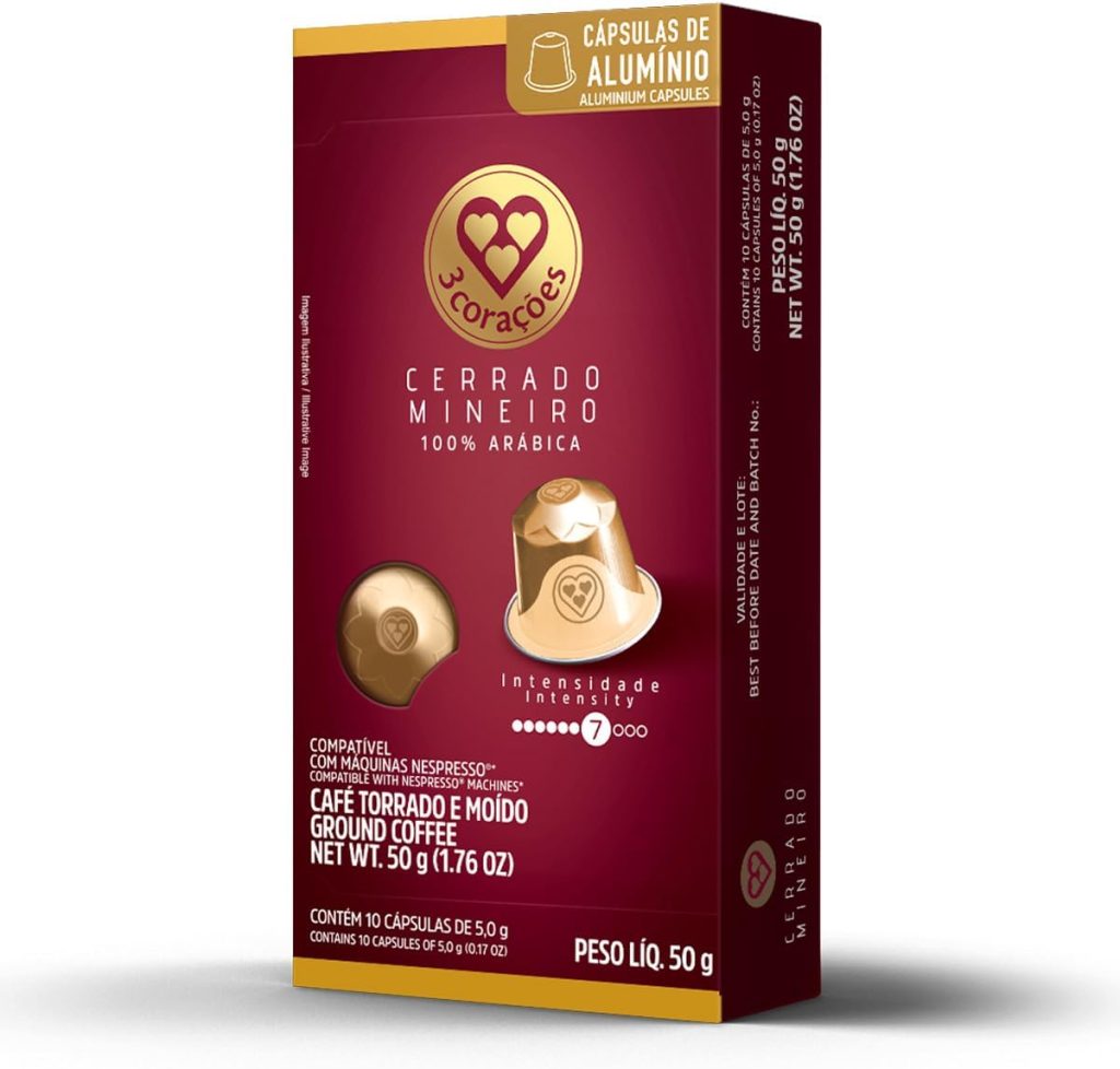3 Corações Cápsulas de Café Cerrado Mineiro, Compatíveis com Nespresso, contém 10 cápsulas