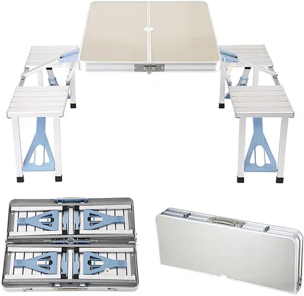 Design Dobrável: Esta mesa de camping é facilmente dobrável, transformando-se em uma maleta compacta para fácil transporte e armazenamento