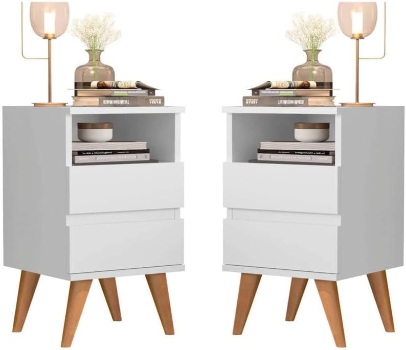 Conjunto kit 2 mesas de cabeceira quarto cama canto – pop – minimalista -Branco