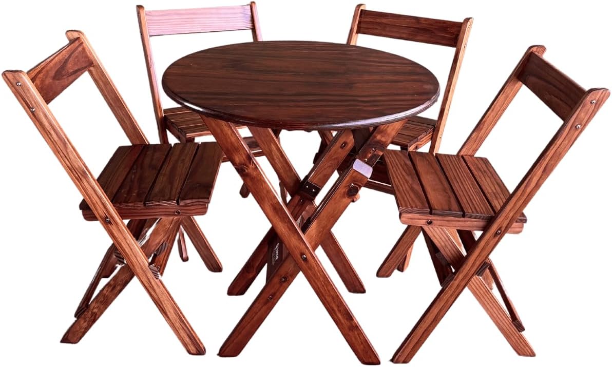 Conjunto Mesa Redonda 70cm Dobrável com 4 Cadeiras em Madeira Maciça – Imbuia