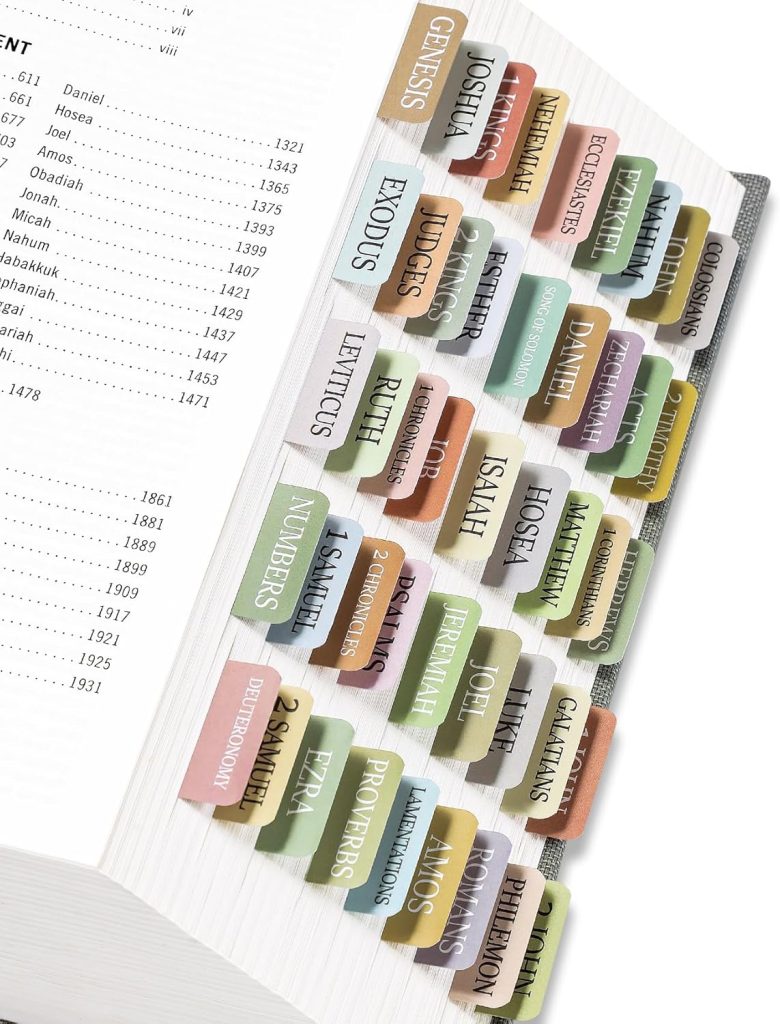 Design estético e resistente: as abas de cores boho adicionam um toque de elegância a qualquer Bíblia, garantindo funcionalidade e apelo visual. As abas apresentam um design robusto, garantindo à prova de rasgos e de longa duração.