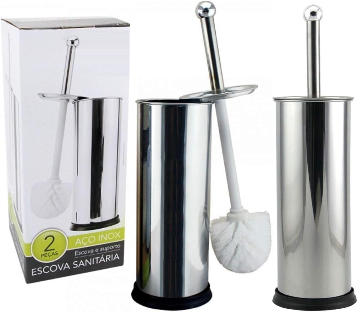 Kit 2 Escovas Sanitária Vassoura Vaso Aço Inox Suporte Banheiro