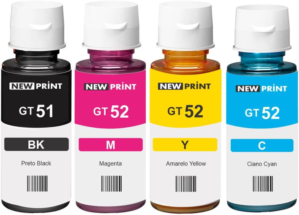 Características do Produto As tintas Compatível NEW PRINT possuem a tecnologia para uso em impressoras que proporciona alta precisão no tamanho da gota, alta resolução, cores vivas e definição nas impressões, produto com LAUDO INMETRO disponibilizado pelo fabricante, garantindo maior segurança de que esta comprando um produto com certificação de qualidade nacional. Você poderá imprimir documentos e imagens com ótima qualidade por um baixo custo por página. Essa tinta possui a mesma tecnologia de ponta, com 99,9% de similaridade em comparação com a Original, pode ser utilizadas nas máquinas mesmo com tintas originais, não acarreta defeito ou problema de qualidade, produto com Laudo Técnico validado pelo INMETRO; Obtenha impressões brilhantes em relatórios, gráficos e fotos. – Compatível com Impressoras: Deskjet GT 5810 Deskjet GT 5811 DeskJet GT 5822 Ink Tank 116 Ink Tank 316 Ink Tank 412 Ink Tank 416 Smart Tank 517 Smart Tank 532 Smart Tank 581 Smart Tank 583 Smart Tank 584 Smart Tank 617 Smart Tank 674 Smart Tank 724 Smart Tank 754 Smart Tank 794 – Conteúdo da Embalagem: 1 cor Preta 90ml – Rende até 8.000 páginas 1 cor Magenta 70ml – Rende até 8.000 páginas 1 cor Ciano 70ml – Rende até 8.000 páginas 1 cor Amarela 70ml – Rende até 8.000 páginas – Tecnologia de impressão: Jato de tinta