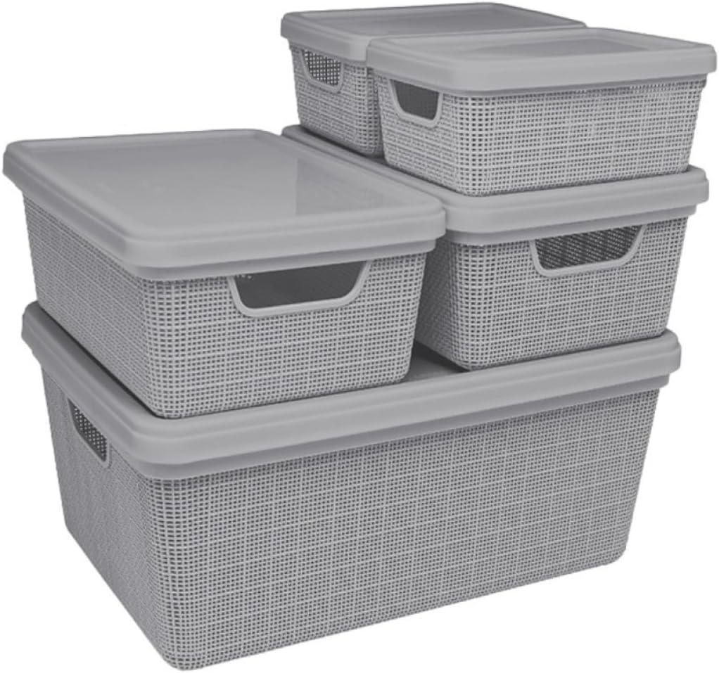 Kit 5 Caixa Organizadora com Tampa Cesto Grande em Plástico 1,8 L 5 L 15 L – Rv-Ecommerce (Cinza)