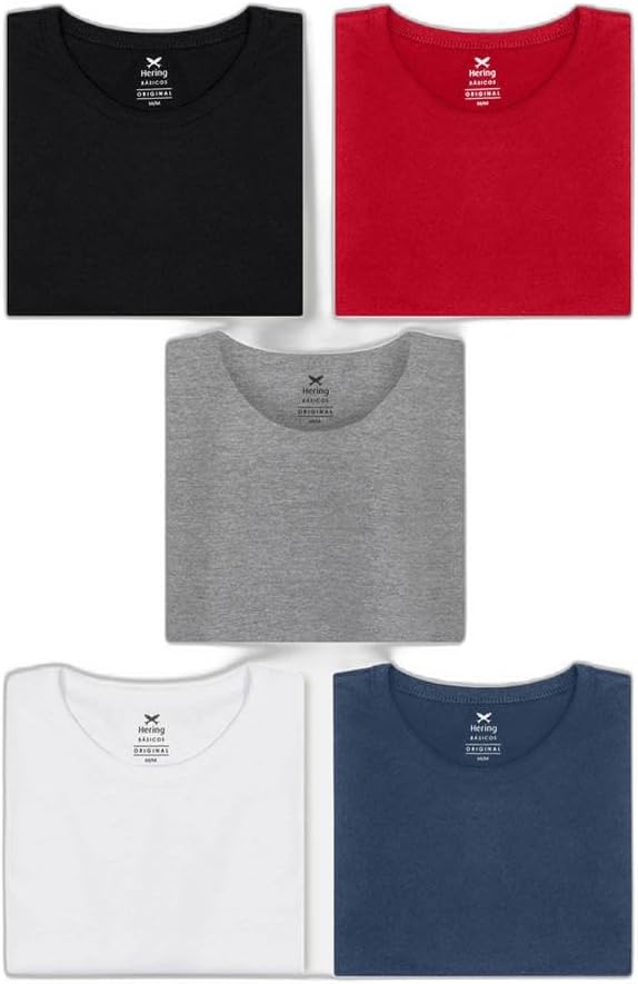 Kit Com 5 Camisetas Masculinas Básicas Slim Hering