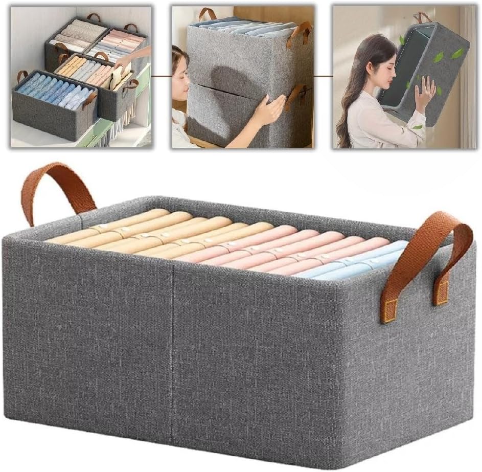 Kit de 6 Cestos Organizadores Dobráveis 25L: Caixas Multiuso com Alças em Plástico Durável para Guarda-Roupa, Gavetas, Lavanderia e Armários.