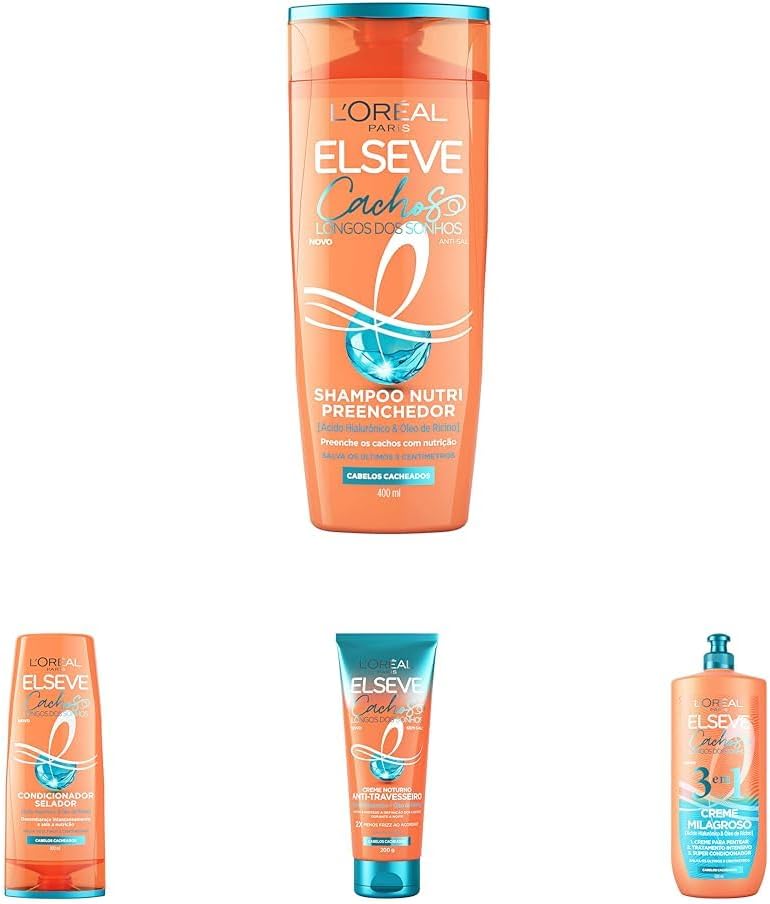 Kit L’Oréal Paris Elseve Cachos Longos Dos Sonhos: Shampoo 400Ml + Condicionador 400ml + Creme Noturno 200Ml + Creme Milagroso 3 Em 1 500Ml