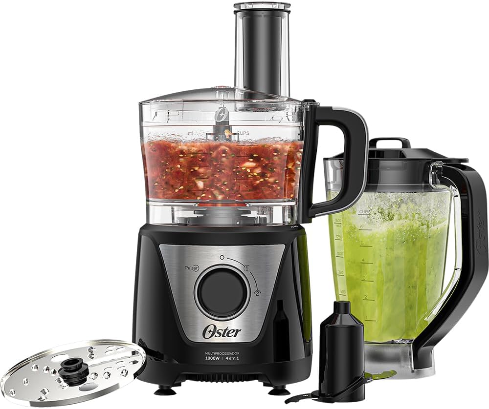 Com o Multiprocessador Oster® você terá mais segurança para a produção dos seus alimentos, pois possui trava de segurança. Com duas jarras, sendo do processador com capacidade de 1litro e do liquidificador com capacidade de 1,5 litros. Suas laminas em aço inox e com dois níveis de velocidade mais função pulsar. Esse Multiprocessador Oster®, é quatro em um, Processador, Liquidificador, Fatiador e Ralador.