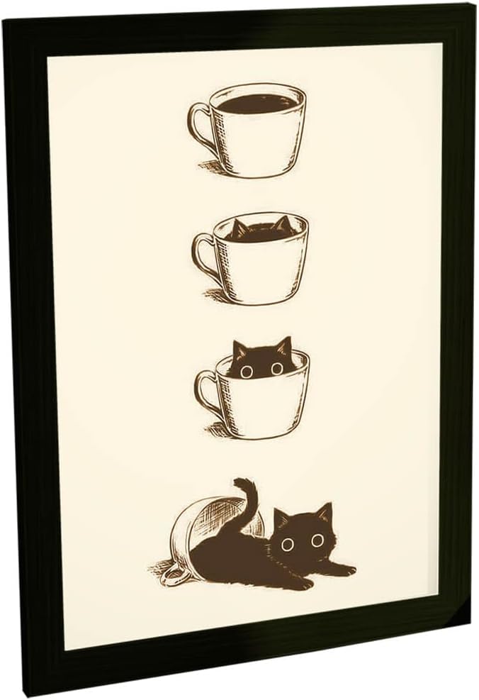 Quadro Decorativo A4 Engraçado Gato Preto E Café Ilustração
